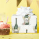 Champanhe verde de casamento com rosa rosa, texto de amor e dois copos em branco. A cor branca do fundo pode ser alterada.