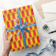 Traga para trás a memórias com estes garrafas retros da ketchup e da mostarda do comensal. O teste padrão de garrafas vermelhas e amarelas clássicas do condimento neste papel de envolvimento tem um fundo alaranjado.