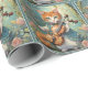 Ótima ilustração de um gato giro tocando violino, bonito fundo floral.