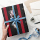 O gato bonito do gatinho das cinzas e do branco olha longingly em decorações do Natal e resiste até agora a tentação entrar no papel de envolvimento do feriado do Natal dos amantes do gato do modo do jogo. Foto do gato das imagens livres do arquivo da morgue e alterada suficientemente