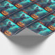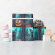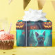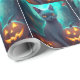 Papel De Presente Gato Azul Russo Halloween Com Pumpkins Assustado