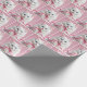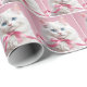 Bonito gato branco com olhos azuis, fita cor-de-rosa e arco sobre fundo rosa e borda branca. A cor da borda pode ser alterada.