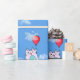 Gatinho rosa-claro com balões vermelhos flutuando em nuvens. A cor do céu pode ser alterada.