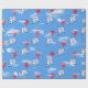 Papel De Presente Gato com balão vermelho em nuvens