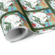 Um gato branco decidiu dormir bem no meio de todos os suprimentos de embrulho de Natal. Nunca se levante por um minuto com um gato!