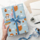 Papel De Presente Gato de Natal giro em floco de neve azul