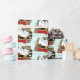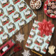 Um gato calico gordinho está numa caixa de Natal aberta de brinquedos e é mais feliz com a caixa e depois com os brinquedos