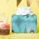 Personalizado, oh la chic Paris, garota e papel de embrulho de presente de gato com a torre Eiffel e as luzes de cordas em um fundo azul damásico. Alguns gráficos de Origins Digital Curio em www.etsy.com/shop/OriginsDigitalCurio.