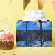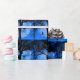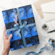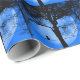 Lua azul de cheio fantástica com um gato preto em fio olhando para ele