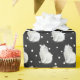 Gato persa branco giro em bolinhas brancas e fundo preto.