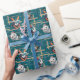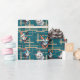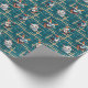 Papel de embrulho azul e branco encantador adorado com ilustrações deliciosas de gatos, ideal para embrulhar presentes com estilo.