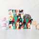 Papel de enrolamento num design de inspiração moderna do século médio com dois gatos estilizados em formato ousado e geométrico de cor laranja, lacre, preto e branco. padrões abstrato e formas retrorativas enchem o fundo, dando-lhe uma vibração divertida e vintage com uma borda minimalista.