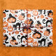 Papel de embrulho de Halloween com um padrão de gatos bonitos esculpindo jack-o-lanternas. Perfeito para embrulhar favoritos para festas ou presentes de aniversário de outubro. Arte original de Marketa Stengl.