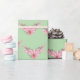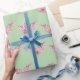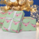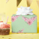 Práticas florais verdes claras e cor-de-rosa, espalhadas por todo o papel de embalagem.