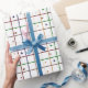 Papel De Presente Geometric Grid Pattern with Scattered Hearts