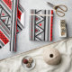 O papel de envolvimento em do sudoeste/asteca inspirou, listras geométricas modernas - vermelho rico do tomate e máscaras de cinzento/cinza com acentos preto e branco