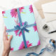 Design adorável é perfeito para aniversários, chás de casamento ou presentes de casamento! Design apresenta um padrão de margaridas gerbera rosa-quente. O design cor-de-rosa está sobre um fundo azul claro.