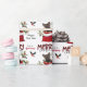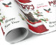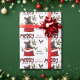 O padrão repetido neste belo papel de embrulho de Natal é uma imagem de um adorável cão de filhote de German shepherd a espreitar de um saco de presentes de Natal vermelho e branco. Atrás dele está um sorvedouro de bagas sagradas e vermelhas. Um pássaro toucinho vermelho e preto está prestes a pousar. O texto da xadrez de búfalos vermelho e preto estilizado diz MERRY CHRISTMAS", e "Feliz ano novo" está em verde-escuro. Sua própria assinatura está em dois campos para você personalizar.