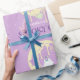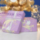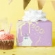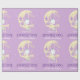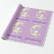 Lua amarela assustadora com fundo roxo e um fantasma fofo com um amigo coruja. Perfeito para uma cutena assustadora Boo! Personalize o nome da sua menina para um papel de embrulho de presente de primeiro aniversario Spooktacular de Halloween.