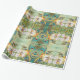 o papel de envolvimento bonito com abelhas dos pássaros floresce e cresce rapidamente no verde azul e no amarelo com um bocado da pintura vermelha nos acrílicos