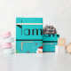 O teste padrão moderno e na moda da ginástica dos esportes com a menina cor-de-rosa do gymnast com terno cor-de-rosa e cabelo marrom, a neve, Papai Noel bonito, chapéus do papai noel, as estrelas vermelhas brancas dos flocos de neve, do verde, do azul, as vermelhas e as amarelas, árvores de Natal verdes com fundo de turquesa e com a listra do preto de turquesa personalizada com apenas adiciona seus presentes conhecidos ou presentes do monograma ou suas iniciais para um presente original. Ideias do presente da ginástica para mulheres e meninas. Ideal para presentes de Natal.