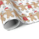 ligadas em cabanas num impressão sem costura repetente, com um fundo falso de folha de prata metálico em falso impressão de folha de neve, estas pessoas de pão de gengibre não poderiam ser mais cheias de alegria apenas para estarem juntas.