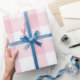 Papel De Presente Gingham Branco e Rosa Grande Pastel