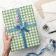 Papel De Presente Gingham Branco e Verde da Aquarela