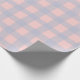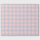 A pastel gingham pattern in pink and lavender shades with a subtle wavy grid effect. Tiny white speckles add a soft textured detail across the design.