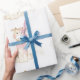 Papel De Presente Girafa Bonita com Chá de Bebê de Folha de Ouro