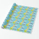 Papel de envolvimento animal personalizado da aguarela do girafa das meninas do feliz aniversario. Fundo azul bonito com um teste padrão de repetição de girafas do divertimento com arcos roxos bonitos. Girafas do estilo da aguarela em amarelo e laranja atrás dos arbustos verdes. Personalize na pia batismal cursive bonito branca e roxa para dizer o FELIZ ANIVERSARIO com nome e idade da menina do aniversário.