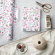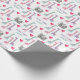 Girafas pontudas adoráveis em cores pastéis, cor-de-rosa e roxo, combinam-se com um lindo elefante bebê para dar as boas vindas ao novo bebê neste papel embrulhado. Junto com as imagens de animais estão corações cor-de-rosa, e seu texto personalizado. Tudo é colocado sobre um fundo branco. Você pode facilmente fazer com que os campos de texto digam o que quiser, então você pode usar este artigo para outras ocasiões como aniversários.