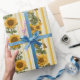 Papel De Presente Girassóis e borboletas em listras amarelas