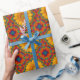 Um conjunto de embrulho de presente florescendo em um caleidoscópio alegre de cores. Pétalas douradas ousadas se encontram com um mosaico animado de vermelhos, azuis, verdes e laranjas, criando um padrão artístico alegre que ilumina o seu dia. Perfeito para presentear, adicionando um pouco de sol ao seu presente. Por que não dar uma olhada na minha coleção de etiquetas, cartões ou produtos correspondentes para encontrar o presente perfeito?