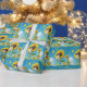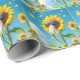 Um girassol vestindo óculos de sol espirrando em um tecido branco com pétalas de flores flutuantes contra um céu azul brilhante