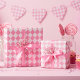 Este clássico papel de empacotamento rosado e giro apresenta um elegante padrão de estilo argyle com diferentes tons de diamantes rosa e linhas pontilhadas. Ideal para aniversariante.