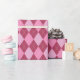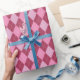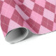 Este papel de embrulho feminino apresenta um padrão de árgula bonito com framboesa e diamantes cor-de-rosa e linhas muito pontilhadas por rosas claro.