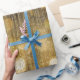 Um belo papel de embrulho dourado com um padrão de cortina brilhante.