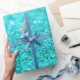 O papel de enrolamento do Design com brilho azul-aqua é brilhante e colorido. Este artigo funcionará perfeitamente para qualquer ideia de presente ou artesanato.
