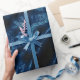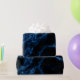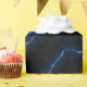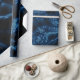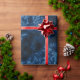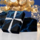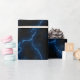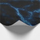 Pequenas faíscas brancas e brilho azul sobre fundo preto. Modelo de papel de embalagem personalizável