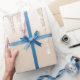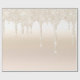 Papel de empacotamento elegante com brilho esparso dourado a gotejar de cima contra um fundo de ouro de champanhe.