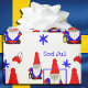 Gnomo Sueco Tomten Livro de Vestimentos de Natal em vermelho, azul e branco com as palavras Deus Jul (Bom Natal). Altere esse texto com o botão Personalizar. Apresenta o tradicional gnomo folclórico visto ao longo da história e mais particularmente em Selma Lagerlof's The Adventures of Nils. Mais ofertas internacionais em outros idiomas escandinavos e outros idiomas do mundo em zazzle.com/windydesign