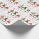 Papel de embrulho de férias bonito, com três gnomos de estilo escandinavo, com chapéus e tunicados de vermelho, verde e dourado, de cor vermelha. Personalize a saudação "Feliz Natal" (por exemplo, "Felizes Feriados") em tipografia vermelha divertida.