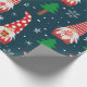 Papel De Presente Gnomos de Natal bonitos com árvores e flocos de ne