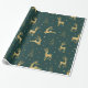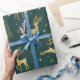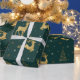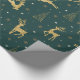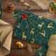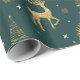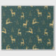 Prancing and dancing reindeer among stylized Christmas trees in a faux gold foil affect are sprinkled with snowflakes and stars in this elegant wrapping paper design. Choose any background color to replace the deep green we've chosen as an example, or leave as is.