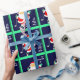 Creative golf holiday gift wrap featuring funny Santa golfer with a club and glowing golf ball. To personalize edit text to add name or otherwise customize.