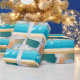 Ilustração de três golfinhos saltando no oceano. 100% Personalização. Clique no botão PERSONALIZAR para adicionar, mover, excluir, redimensionar ou alterar qualquer uma das fontes ou gráficos.