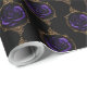 Um design com Gótico de com um rosa roxo escuro dentro de um quadro circular dourado.