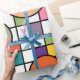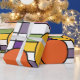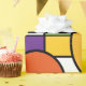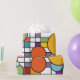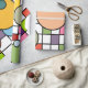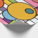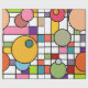 Este papel de embrulho tem um design moderno do século médio de uma grelha com alguns retângulos coloridos e círculos no topo em cores retrorreflectoras.