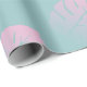 Papel de embalagem moderno e moderno com gradiente de pasta mole. Monstera minimalista deixa o padrão. Cor azul e rosa.